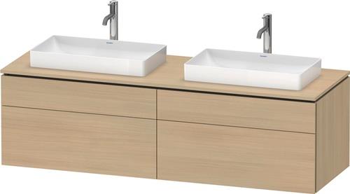 Duravit L-Cube Konsolenwaschtischunterbau wandhängend · 1600x550 mm · Farbe Front: Mediterrane Eiche Matt · Farbe Korpus: Mediterrane Eiche Matt · Anzahl Auszüge: 2 · Anzahl Schubkasten: 2 · Anzahl Ausschnitte: 2 · Siphonausschnitt · Inkl. Konsolenplatte · Tip-on