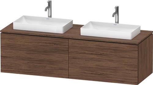 Duravit L-Cube Konsolenwaschtischunterbau wandhängend · 1600x550 mm · Farbe Front: Nussbaum (dunkel) Matt · Farbe Korpus: Nussbaum (dunkel) Matt · Anzahl Auszüge: 2 · Anzahl Schubkasten: 2 · Anzahl Ausschnitte: 2 · Siphonausschnitt · Inkl. Konsolenplatte · Tip-on