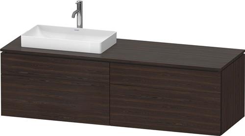 Duravit L-Cube Konsolenwaschtischunterbau wandhängend · 1600x550 mm · Farbe Front: Nussbaum (gebürstet) Matt · Farbe Korpus: Nussbaum (gebürstet) Matt · Anzahl Auszüge: 2 · Anzahl Schubkasten: 2 · Anzahl Ausschnitte: 1 · Siphonausschnitt · Inkl. Konsolenplatte · T