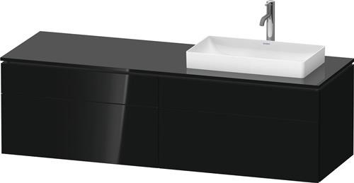 Duravit L-Cube Konsolenwaschtischunterbau wandhängend · 1600x550 mm · Farbe Front: Schwarz Hochglanz · Farbe Korpus: Schwarz Hochglanz · Anzahl Auszüge: 2 · Anzahl Schubkasten: 2 · Anzahl Ausschnitte: 1 · Siphonausschnitt · Inkl. Konsolenplatte · Tip-on Technik -