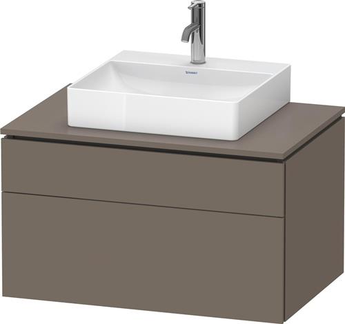 Duravit L-Cube Konsolenwaschtischunterbau wandhängend · 800x550 mm · Farbe Front: Flanell Grau Seidenmatt · Farbe Korpus: Flanell Grau Seidenmatt · Anzahl Auszüge: 1 · Anzahl Schubkasten: 1 · Anzahl Ausschnitte: 1 · Siphonausschnitt · Inkl. Konsolenplatte · Tip-on