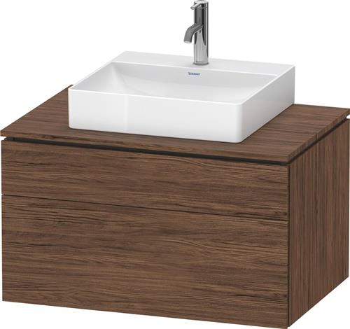 Duravit L-Cube Konsolenwaschtischunterbau wandhängend · 800x550 mm · Farbe Front: Nussbaum (dunkel) Matt · Farbe Korpus: Nussbaum (dunkel) Matt · Anzahl Auszüge: 1 · Anzahl Schubkasten: 1 · Anzahl Ausschnitte: 1 · Siphonausschnitt · Inkl. Konsolenplatte · Tip-on T