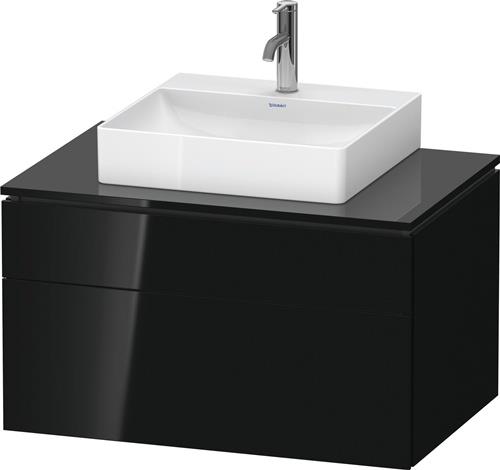 Duravit L-Cube Konsolenwaschtischunterbau wandhängend · 800x550 mm · Farbe Front: Schwarz Hochglanz · Farbe Korpus: Schwarz Hochglanz · Anzahl Auszüge: 1 · Anzahl Schubkasten: 1 · Anzahl Ausschnitte: 1 · Siphonausschnitt · Inkl. Konsolenplatte · Tip-on Technik - L