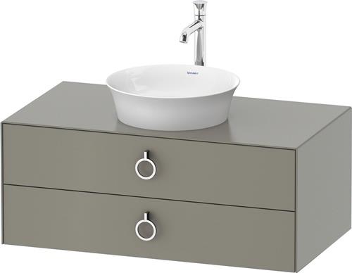 Duravit White Tulip Konsolenwaschtischunterbau wandhängend · 1000x550 mm · Farbe Front: Stein Grau Seidenmatt · Farbe Korpus: Stein Grau Seidenmatt · Farbe Griff: Chrom Hochglanz · Anzahl Schubkasten: 2 · Anzahl Ausschnitte: 1 · Siphonausschnitt · Inkl. Konsolenp