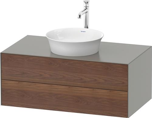 Duravit White Tulip Konsolenwaschtischunterbau wandhängend · 1000x550 mm · Farbe Front: Amerikanischer Nussbaum Matt · Farbe Korpus: Stein Grau Seidenmatt · Anzahl Schubkasten: 2 · Anzahl Ausschnitte: 1 · Siphonausschnitt · Inkl. Konsolenplatte · Tip-on Technik -