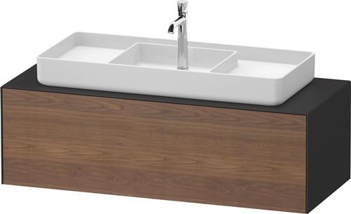 Duravit White Tulip Konsolenwaschtischunterbau wandhängend · 1300x550 mm · Farbe Front: Amerikanischer Nussbaum Matt · Farbe Korpus: Graphit Seidenmatt · Anzahl Auszüge: 1 · Anzahl Ausschnitte: 1 · Inkl. Konsolenplatte · Tip-on Technik - WT4977M77580010