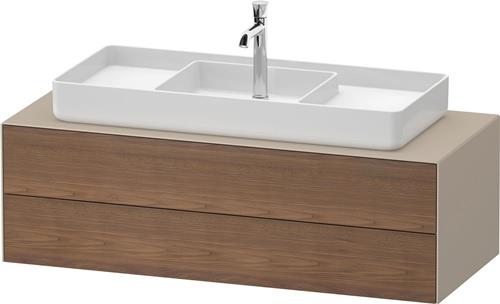 Duravit White Tulip Konsolenwaschtischunterbau wandhängend · 1300x550 mm · Farbe Front: Amerikanischer Nussbaum Matt · Farbe Korpus: Taupe Seidenmatt · Anzahl Schubkasten: 2 · Anzahl Ausschnitte: 1 · Siphonausschnitt · Inkl. Konsolenplatte · Tip-on Technik - WT49