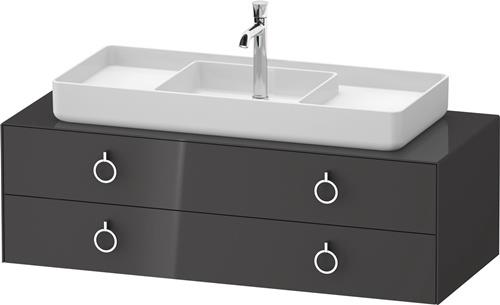 Duravit White Tulip Konsolenwaschtischunterbau wandhängend · 1300x550 mm · Farbe Front: Amerikanischer Nussbaum Matt · Farbe Korpus: Stein Grau Seidenmatt · Farbe Griff: Chrom Hochglanz · Anzahl Schubkasten: 2 · Anzahl Ausschnitte: 1 · Siphonausschnitt · Inkl. Ko