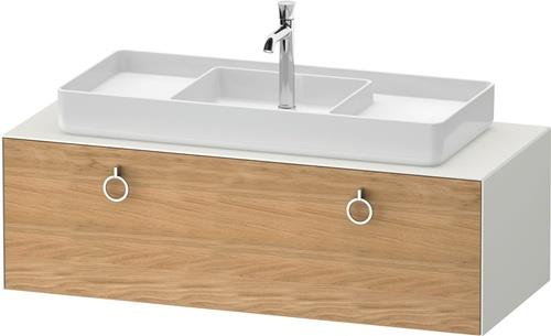 Duravit White Tulip Konsolenwaschtischunterbau wandhängend · 1300x550 mm · Farbe Front: Natur Eiche Matt · Farbe Korpus: Weiß Seidenmatt · Farbe Griff: Chrom Hochglanz · Anzahl Auszüge: 1 · Anzahl Ausschnitte: 1 · Inkl. Konsolenplatte - WT4982MH5360000