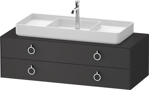 Duravit White Tulip Konsolenwaschtischunterbau wandhängend · 1300x550 mm · Farbe Front: Graphit Seidenmatt · Farbe Korpus: Graphit Seidenmatt · Farbe Griff: Chrom Hochglanz · Anzahl Schubkasten: 2 · Anzahl Ausschnitte: 1 · Siphonausschnitt · Inkl. Konsolenplatte