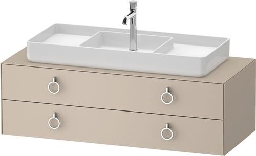 Duravit White Tulip Konsolenwaschtischunterbau wandhängend · 1300x550 mm · Farbe Front: Taupe Seidenmatt · Farbe Korpus: Taupe Seidenmatt · Farbe Griff: Chrom Hochglanz · Anzahl Schubkasten: 2 · Anzahl Ausschnitte: 1 · Siphonausschnitt · Inkl. Konsolenplatte - WT