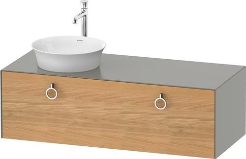 Duravit White Tulip Konsolenwaschtischunterbau wandhängend · 1300x550 mm · Farbe Front: Natur Eiche Matt · Farbe Korpus: Stein Grau Seidenmatt · Farbe Griff: Chrom Hochglanz · Anzahl Auszug: 1 · Anzahl Ausschnitte: 1 · Inkl. Konsolenplatte - WT4982LH5920010