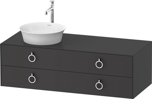 Duravit White Tulip Konsolenwaschtischunterbau wandhängend · 1300x550 mm · Farbe Front: Graphit Seidenmatt · Farbe Korpus: Graphit Seidenmatt · Farbe Griff: Chrom Hochglanz · Anzahl Schubkasten: 2 · Anzahl Ausschnitte: 1 · Siphonausschnitt · Inkl. Konsolenplatte