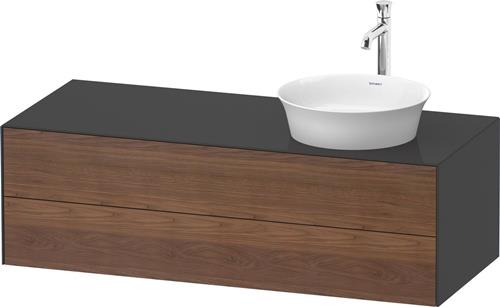 Duravit White Tulip Konsolenwaschtischunterbau wandhängend · 1300x550 mm · Farbe Front: Amerikanischer Nussbaum Matt · Farbe Korpus: Graphit Hochglanz · Anzahl Schubkasten: 2 · Anzahl Ausschnitte: 1 · Siphonausschnitt · Inkl. Konsolenplatte · Tip-on Technik - WT4