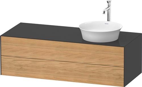 Duravit White Tulip Konsolenwaschtischunterbau wandhängend · 1300x550 mm · Farbe Front: Natur Eiche Matt · Farbe Korpus: Graphit Hochglanz · Anzahl Schubkasten: 2 · Anzahl Ausschnitte: 1 · Siphonausschnitt · Inkl. Konsolenplatte · Tip-on Technik - WT4987RH5H10010