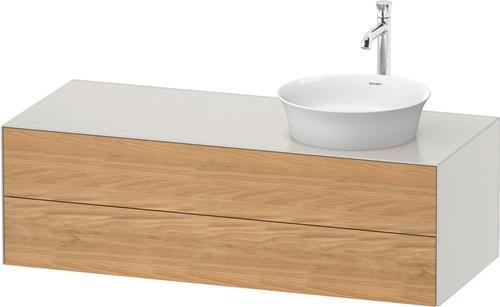 Duravit White Tulip Konsolenwaschtischunterbau wandhängend · 1300x550 mm · Farbe Front: Natur Eiche Matt · Farbe Korpus: Nordic Weiß Seidenmatt · Anzahl Schubkasten: 2 · Anzahl Ausschnitte: 1 · Siphonausschnitt · Inkl. Konsolenplatte · Tip-on Technik - WT4987RH53