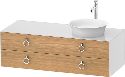 Duravit White Tulip Konsolenwaschtischunterbau wandhängend · 1300x550 mm · Farbe Front: Natur Eiche Matt · Farbe Korpus: Weiß Hochglanz · Farbe Griff: Chrom Hochglanz · Anzahl Schubkasten: 2 · Anzahl Ausschnitte: 1 · Siphonausschnitt · Inkl. Konsolenplatte - WT49