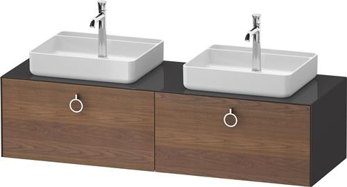 Duravit White Tulip Konsolenwaschtischunterbau wandhängend · 1600x550 mm · Farbe Front: Amerikanischer Nussbaum Matt · Farbe Korpus: Graphit Hochglanz · Farbe Griff: Chrom Hochglanz · Anzahl Auszüge: 2 · Anzahl Ausschnitte: 2 · Inkl. Konsolenplatte - WT4891B77H1