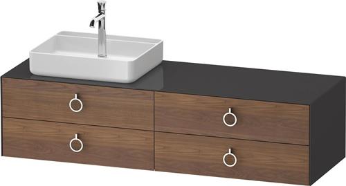 Duravit White Tulip Konsolenwaschtischunterbau wandhängend · 1600x550 mm · Farbe Front: Amerikanischer Nussbaum Matt · Farbe Korpus: Graphit Hochglanz · Farbe Griff: Chrom Hochglanz · Anzahl Schubkasten: 4 · Anzahl Ausschnitte: 1 · Siphonausschnitt · Inkl. Konsol
