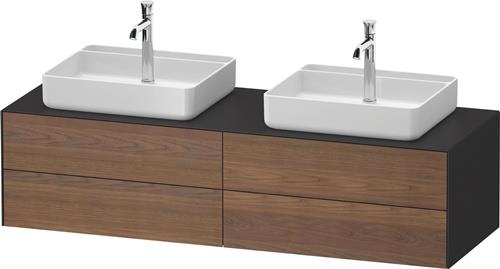 Duravit White Tulip Konsolenwaschtischunterbau wandhängend · 1300x550 mm · Farbe Front: Amerikanischer Nussbaum Matt · Farbe Korpus: Graphit Seidenmatt · Anzahl Schubkasten: 4 · Anzahl Ausschnitte: 2 · Siphonausschnitt · Inkl. Konsolenplatte · Tip-on Technik - WT