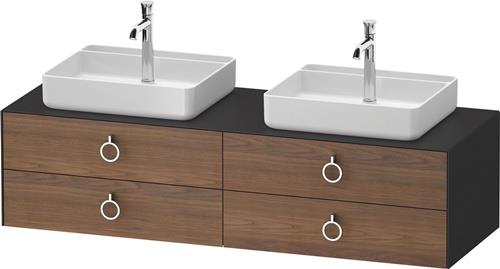 Duravit White Tulip Konsolenwaschtischunterbau wandhängend · 1600x550 mm · Farbe Front: Amerikanischer Nussbaum Matt · Farbe Korpus: Graphit Seidenmatt · Farbe Griff: Chrom Hochglanz · Anzahl Schubkasten: 4 · Anzahl Ausschnitte: 2 · Siphonausschnitt · Inkl. Konso