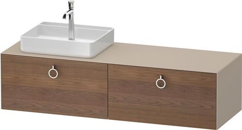 Duravit White Tulip Konsolenwaschtischunterbau wandhängend · 1600x550 mm · Farbe Front: Amerikanischer Nussbaum Matt · Farbe Korpus: Taupe Seidenmatt · Farbe Griff: Chrom Hochglanz · Anzahl Auszüge: 2 · Anzahl Ausschnitte: 1 · Inkl. Konsolenplatte - WT4890L77600