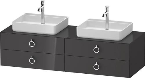 Duravit White Tulip Konsolenwaschtischunterbau wandhängend · 1600x550 mm · Farbe Front: Amerikanischer Nussbaum Matt · Farbe Korpus: Taupe Seidenmatt · Farbe Griff: Chrom Hochglanz · Anzahl Schubkasten: 4 · Anzahl Ausschnitte: 2 · Siphonausschnitt · Inkl. Konsole