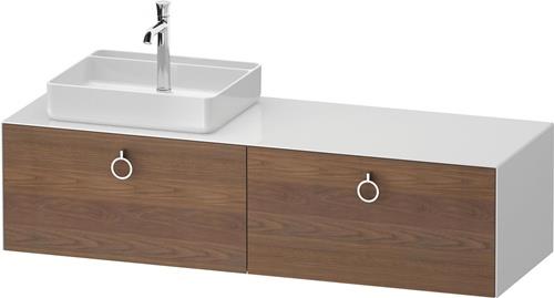 Duravit White Tulip Konsolenwaschtischunterbau wandhängend · 1600x550 mm · Farbe Front: Amerikanischer Nussbaum Matt · Farbe Korpus: Weiß Hochglanz · Farbe Griff: Chrom Hochglanz · Anzahl Auszüge: 2 · Anzahl Ausschnitte: 1 · Inkl. Konsolenplatte - WT4890L7785000