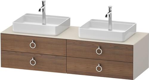 Duravit White Tulip Konsolenwaschtischunterbau wandhängend · 1600x550 mm · Farbe Front: Amerikanischer Nussbaum Matt · Farbe Korpus: Nordic Weiß Seidenmatt · Farbe Griff: Chrom Hochglanz · Anzahl Schubkasten: 4 · Anzahl Ausschnitte: 2 · Siphonausschnitt · Inkl. K