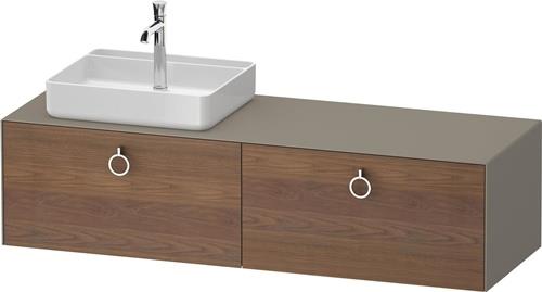 Duravit White Tulip Konsolenwaschtischunterbau wandhängend · 1600x550 mm · Farbe Front: Amerikanischer Nussbaum Matt · Farbe Korpus: Stein Grau Seidenmatt · Farbe Griff: Chrom Hochglanz · Anzahl Auszüge: 2 · Anzahl Ausschnitte: 1 · Inkl. Konsolenplatte - WT4890L