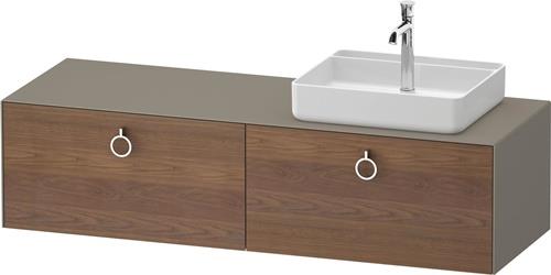 Duravit White Tulip Konsolenwaschtischunterbau wandhängend · 1600x550 mm · Farbe Front: Amerikanischer Nussbaum Matt · Farbe Korpus: Stein Grau Seidenmatt · Farbe Griff: Chrom Hochglanz · Anzahl Auszüge: 2 · Anzahl Ausschnitte: 1 · Inkl. Konsolenplatte - WT4890R