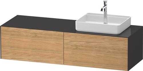 Duravit White Tulip Konsolenwaschtischunterbau wandhängend · 1300x550 mm · Farbe Front: Natur Eiche Matt · Farbe Korpus: Graphit Hochglanz · Anzahl Auszüge: 2 · Anzahl Ausschnitte: 1 · Inkl. Konsolenplatte · Tip-on Technik - WT4864RH5H10010