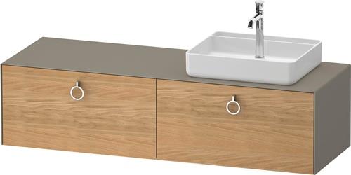 Duravit White Tulip Konsolenwaschtischunterbau wandhängend · 1600x550 mm · Farbe Front: Natur Eiche Matt · Farbe Korpus: Stein Grau Seidenmatt · Farbe Griff: Chrom Hochglanz · Anzahl Auszüge: 2 · Anzahl Ausschnitte: 1 · Inkl. Konsolenplatte - WT4890RH5920010