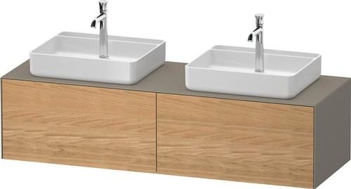 Duravit White Tulip Konsolenwaschtischunterbau wandhängend · 1300x550 mm · Farbe Front: Natur Eiche Matt · Farbe Korpus: Stein Grau Seidenmatt · Anzahl Auszüge: 2 · Anzahl Ausschnitte: 2 · Inkl. Konsolenplatte · Tip-on Technik - WT4865BH5920000