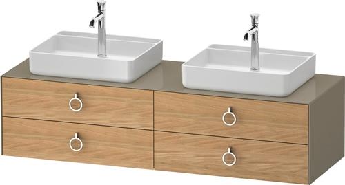 Duravit White Tulip Konsolenwaschtischunterbau wandhängend · 1600x550 mm · Farbe Front: Natur Eiche Matt · Farbe Korpus: Stein Grau Hochglanz · Farbe Griff: Chrom Hochglanz · Anzahl Schubkasten: 4 · Anzahl Ausschnitte: 2 · Siphonausschnitt · Inkl. Konsolenplatte
