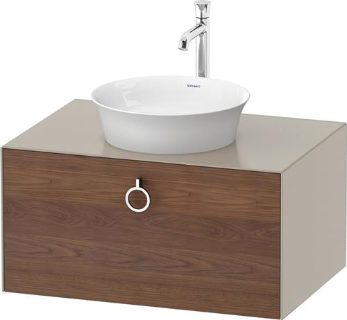 Duravit White Tulip Konsolenwaschtischunterbau wandhängend · 800x550 mm · Farbe Front: Amerikanischer Nussbaum Matt · Farbe Korpus: Taupe Seidenmatt · Farbe Griff: Chrom Hochglanz · Anzahl Auszug: 1 · Anzahl Ausschnitte: 1 · Inkl. Konsolenplatte - WT498007760001
