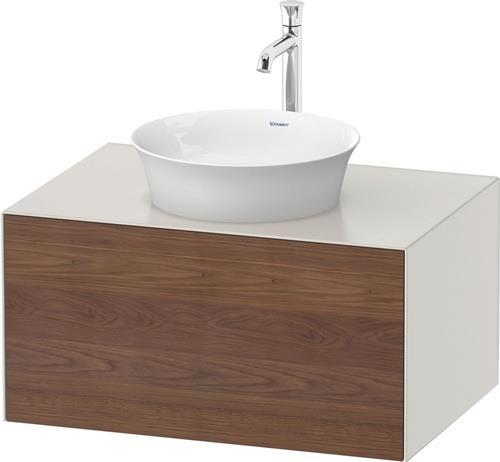 Duravit White Tulip Konsolenwaschtischunterbau wandhängend · 800x550 mm · Farbe Front: Amerikanischer Nussbaum Matt · Farbe Korpus: Nordic Weiß Seidenmatt · Anzahl Auszug: 1 · Anzahl Ausschnitte: 1 · Inkl. Konsolenplatte · Tip-on Technik - WT4975077390010