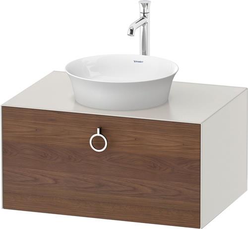 Duravit White Tulip Konsolenwaschtischunterbau wandhängend · 800x550 mm · Farbe Front: Amerikanischer Nussbaum Matt · Farbe Korpus: Nordic Weiß Seidenmatt · Farbe Griff: Chrom Hochglanz · Anzahl Auszug: 1 · Anzahl Ausschnitte: 1 · Inkl. Konsolenplatte - WT498007