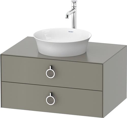 Duravit White Tulip Konsolenwaschtischunterbau wandhängend · 800x550 mm · Farbe Front: Stein Grau Seidenmatt · Farbe Korpus: Stein Grau Seidenmatt · Farbe Griff: Chrom Hochglanz · Anzahl Schubkasten: 2 · Anzahl Ausschnitte: 1 · Siphonausschnitt · Inkl. Konsolenpl