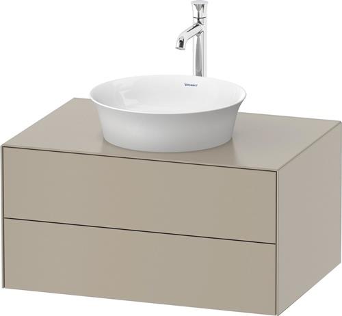 Duravit White Tulip Konsolenwaschtischunterbau wandhängend · 800x550 mm · Farbe Front: Taupe Seidenmatt · Farbe Korpus: Taupe Seidenmatt · Anzahl Schubkasten: 2 · Anzahl Ausschnitte: 1 · Siphonausschnitt · Inkl. Konsolenplatte · Tip-on Technik - WT4985060600010