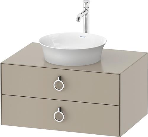 Duravit White Tulip Konsolenwaschtischunterbau wandhängend · 800x550 mm · Farbe Front: Taupe Seidenmatt · Farbe Korpus: Taupe Seidenmatt · Farbe Griff: Chrom Hochglanz · Anzahl Schubkasten: 2 · Anzahl Ausschnitte: 1 · Siphonausschnitt · Inkl. Konsolenplatte - WT4