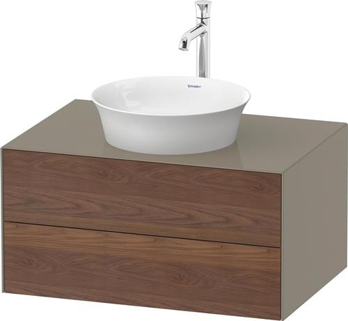 Duravit White Tulip Konsolenwaschtischunterbau wandhängend · 800x550 mm · Farbe Front: Amerikanischer Nussbaum Matt · Farbe Korpus: Stein Grau Hochglanz · Anzahl Schubkasten: 2 · Anzahl Ausschnitte: 1 · Siphonausschnitt · Inkl. Konsolenplatte · Tip-on Technik - W