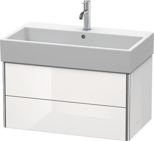 Duravit Xsquare Waschtischunterbau wandhängend · 784x460 mm · Farbe Front: Weiß Hochglanz · Farbe Korpus: Weiß Hochglanz · Farbe Profil: Chrom Hochglanz · Anzahl Schubkasten: 2 · Siphonausschnitt · Tip-on Technik - XS4195022220A00