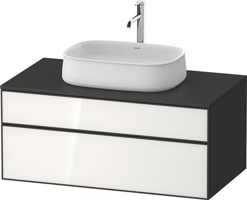 Duravit Zencha Konsolenwaschtischunterbau wandhängend · 1000x550 mm · Farbe Front: Weiß n/a · Farbe Korpus: Graphit Supermatt · Anzahl Auszüge: 1 · Anzahl Schubkasten: 1 · Anzahl Ausschnitte: 1 · Siphonausschnitt · Inkl. Konsolenplatte · Tip-on Technik - ZE4821064