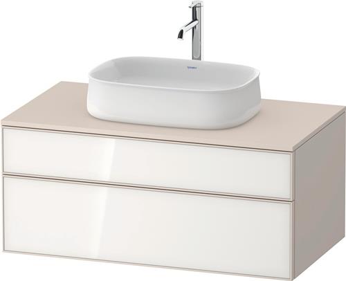 Duravit Zencha Konsolenwaschtischunterbau wandhängend · 1000x550 mm · Farbe Front: Weiß n/a · Farbe Korpus: Taupe Supermatt · Anzahl Auszüge: 1 · Anzahl Schubkasten: 1 · Anzahl Ausschnitte: 1 · Siphonausschnitt · Inkl. Konsolenplatte · Tip-on Technik - ZE482106483
