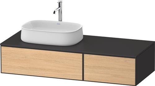Duravit Zencha Konsolenwaschtischunterbau wandhängend · 1300x550 mm · Farbe Front: Natur Eiche Matt · Farbe Korpus: Graphit Supermatt · Anzahl Auszüge: 2 · Anzahl Ausschnitte: 1 · Inkl. Konsolenplatte · Tip-on Technik - ZE4816030800000