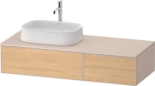 Duravit Zencha Konsolenwaschtischunterbau wandhängend · 1300x550 mm · Farbe Front: Natur Eiche Matt · Farbe Korpus: Taupe Supermatt · Anzahl Auszüge: 2 · Anzahl Ausschnitte: 1 · Inkl. Konsolenplatte · Tip-on Technik - ZE4816030830000