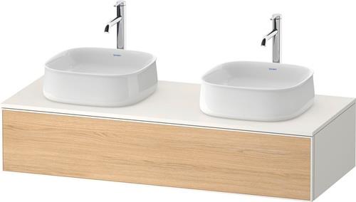 Duravit Zencha Konsolenwaschtischunterbau wandhängend · 1300x550 mm · Farbe Front: Natur Eiche Matt · Farbe Korpus: Weiß Supermatt · Anzahl Auszüge: 1 · Anzahl Ausschnitte: 2 · Inkl. Konsolenplatte · Tip-on Technik - ZE4813B30840000