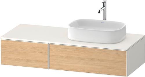 Duravit Zencha Konsolenwaschtischunterbau wandhängend · 1300x550 mm · Farbe Front: Natur Eiche Matt · Farbe Korpus: Weiß Supermatt · Anzahl Auszüge: 2 · Anzahl Ausschnitte: 1 · Inkl. Konsolenplatte · Tip-on Technik - ZE4817030840000