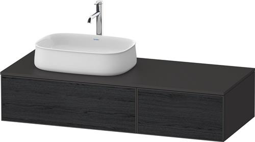 Duravit Zencha Konsolenwaschtischunterbau wandhängend · 1300x550 mm · Farbe Front: Eiche (Schwarz) Matt · Farbe Korpus: Graphit Supermatt · Anzahl Auszüge: 2 · Anzahl Ausschnitte: 1 · Inkl. Konsolenplatte · Tip-on Technik - ZE4816016800000